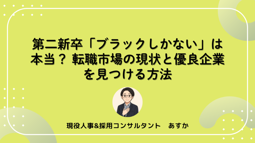 「第二新卒はブラック企業しかない」という言葉を耳にして、転職活動に不安を感じていませんか? 早期退職をしてしまったけれど、次は絶対に失敗したくない。そんなあなたの不安を解消するために、この記事では第二新卒の転職市場のリアルな現状と、ブラッ...