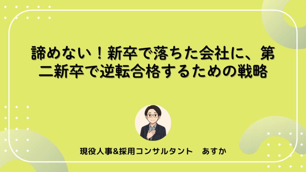 「あの時、どうしても行きたかった会社…やっぱり諦めきれない」 新卒で不合格だった会社への想いを胸に、第二新卒として再挑戦を考えているあなたへ。 一度は夢破れた会社への再挑戦は、不安も大きいかもしれません。しかし、適切な準備と対策をすることで... -