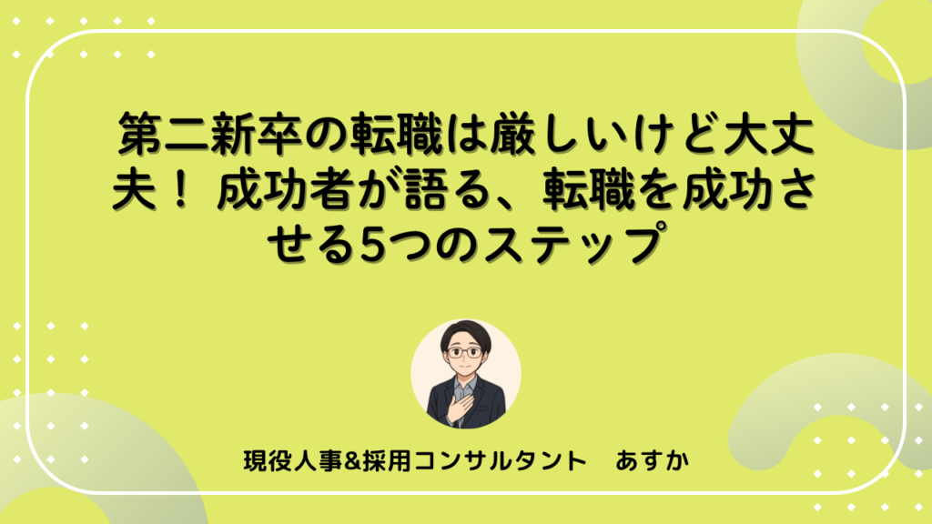 「第二新卒 転職 厳しい」という言葉を目にして、不安を感じていませんか? 新卒で入社した会社を辞めたいけど、転職がうまくいくか心配… この記事では、第二新卒の転職が厳しいと言われる理由から、成功させるための具体的な対策まで、徹底的に解説します... -