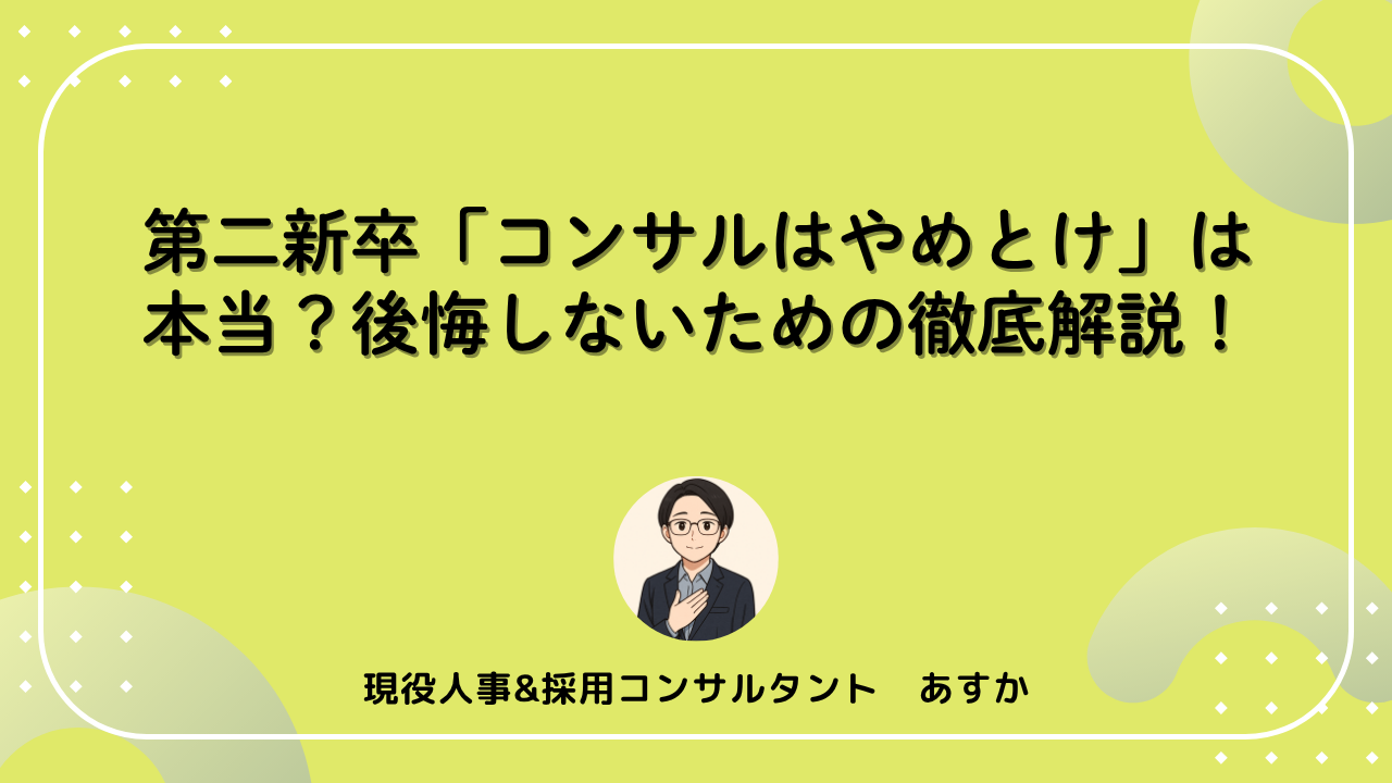 第二新卒「コンサルはやめとけ」は本当?後悔しないための徹底解説!